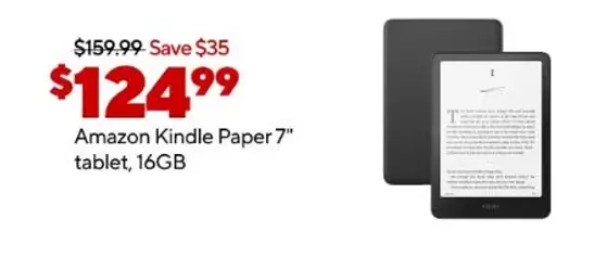 Don't miss out! Shop in store and get $124.99 on Amazon Kindle Paper 7'' tablet, 16GB.